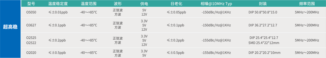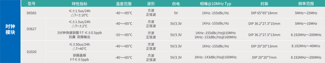 为满足复杂通信应用场景对晶振的需求,在能够提供高精准频率基础上,赛思研制了具有5E-11业内同级别最高的的温度稳定性、秒稳优于5E-12性能的超高稳OCXO O3627和至高支持-55℃~+85℃宽温高性价比的系列晶振产品。同时,对于守时精度要求较高的场景,赛思时钟模块产品最高可支持1.5us@24小时的保持能力供用户选择。